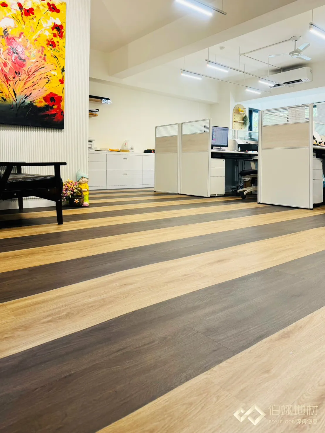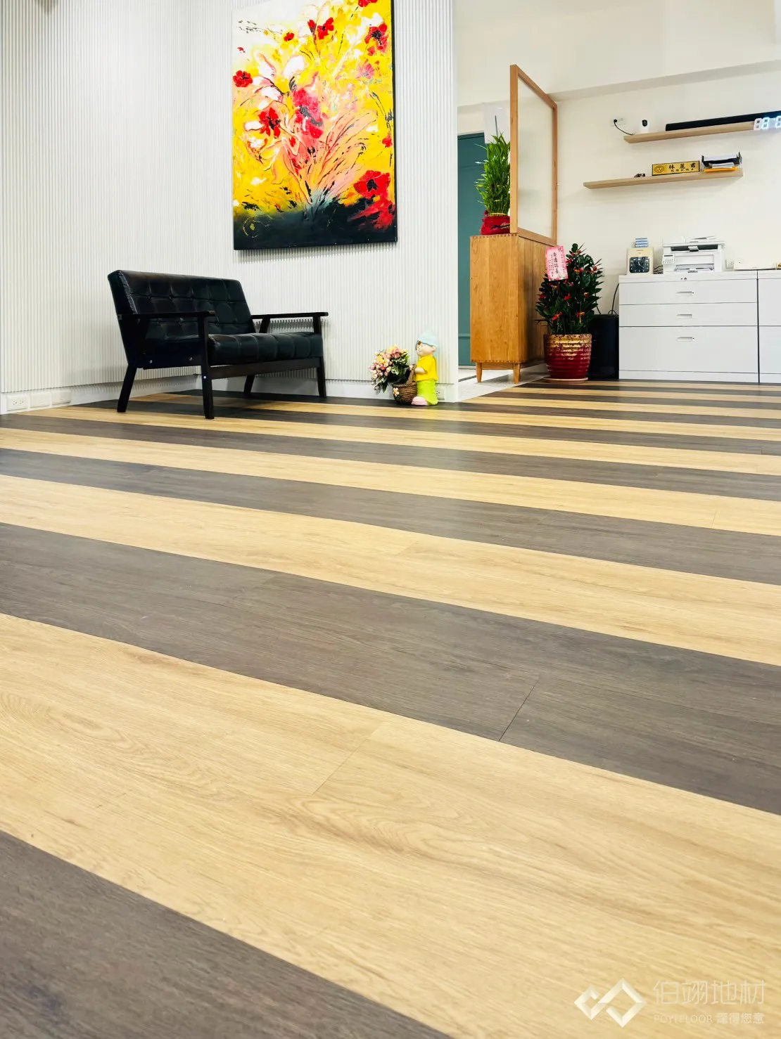 地面選用了我們的 薔薇系列 / 商用等級 PVC 藝術地板。